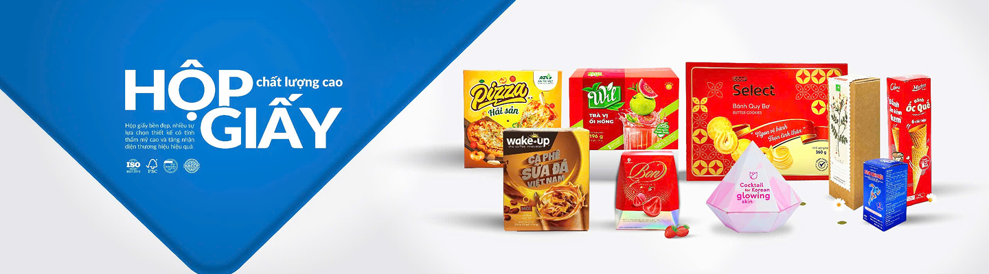 Producing 1-layer boxes, carton boxes, high-end boxes on modern and closed production lines, ensuring high and consistent product quality. Integrating coating, lamination, embossing/debossing, hot stamping effects… helps enhance aesthetics, protect the surface and enhance brand recognition value.