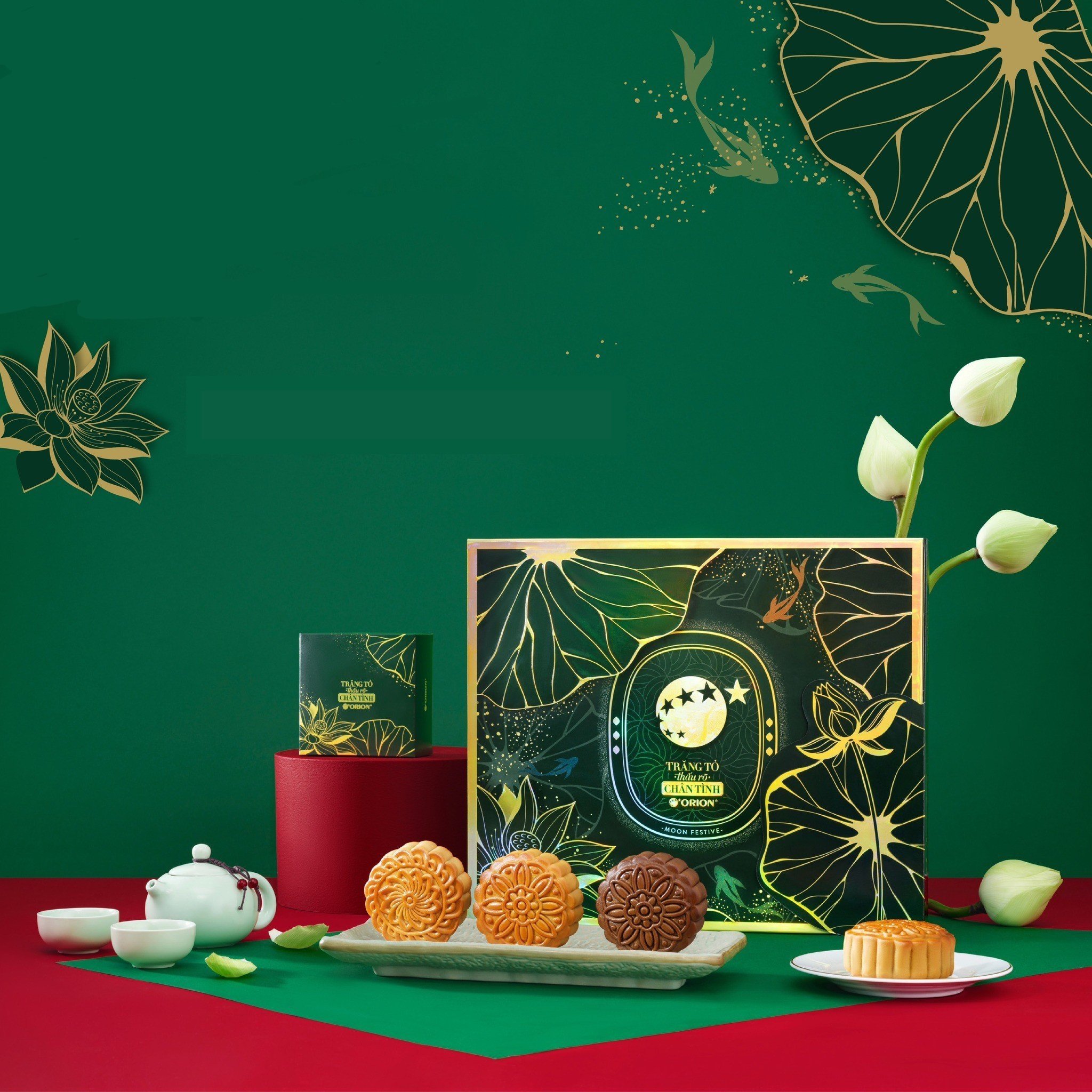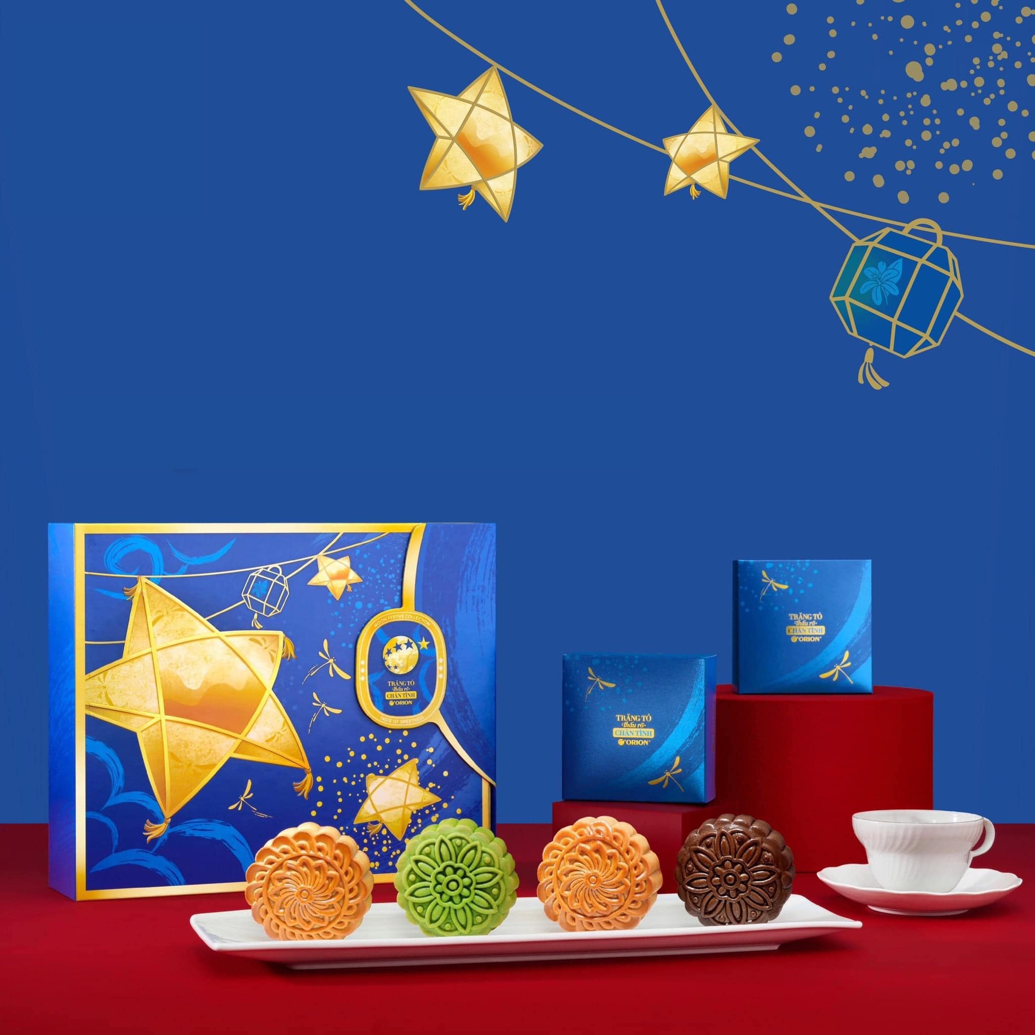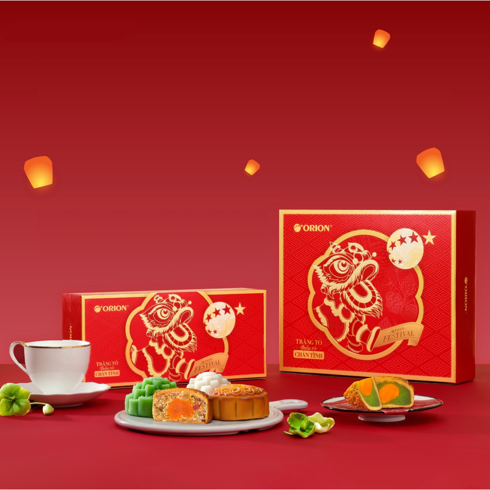 Lấy cảm hứng từ những biểu tượng đặc trưng trong văn hóa Trung Thu Việt Nam như bông sen, ngôi sao sáng, hoa cúc vàng, lân sư rồng…, dự án bao bì bánh Trung Thu Orion mang đậm tinh thần văn hoá truyền thống, nhưng vẫn được thể hiện bằng ngôn ngữ đồ họa hiện đại.